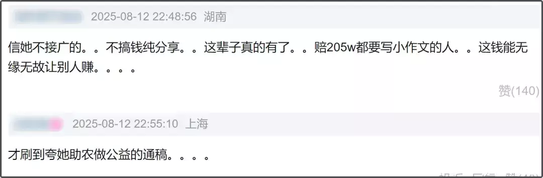 最后就想说,明星做公益助农是好事,如果背后涉及其他利益输送,那性质则完全不一样,毕竟为自己的品牌宣传赚钱和助力企业助农销量是两码事。也希望赵露思能对此事做出正式回应,别给自己带来更多影响了吧。